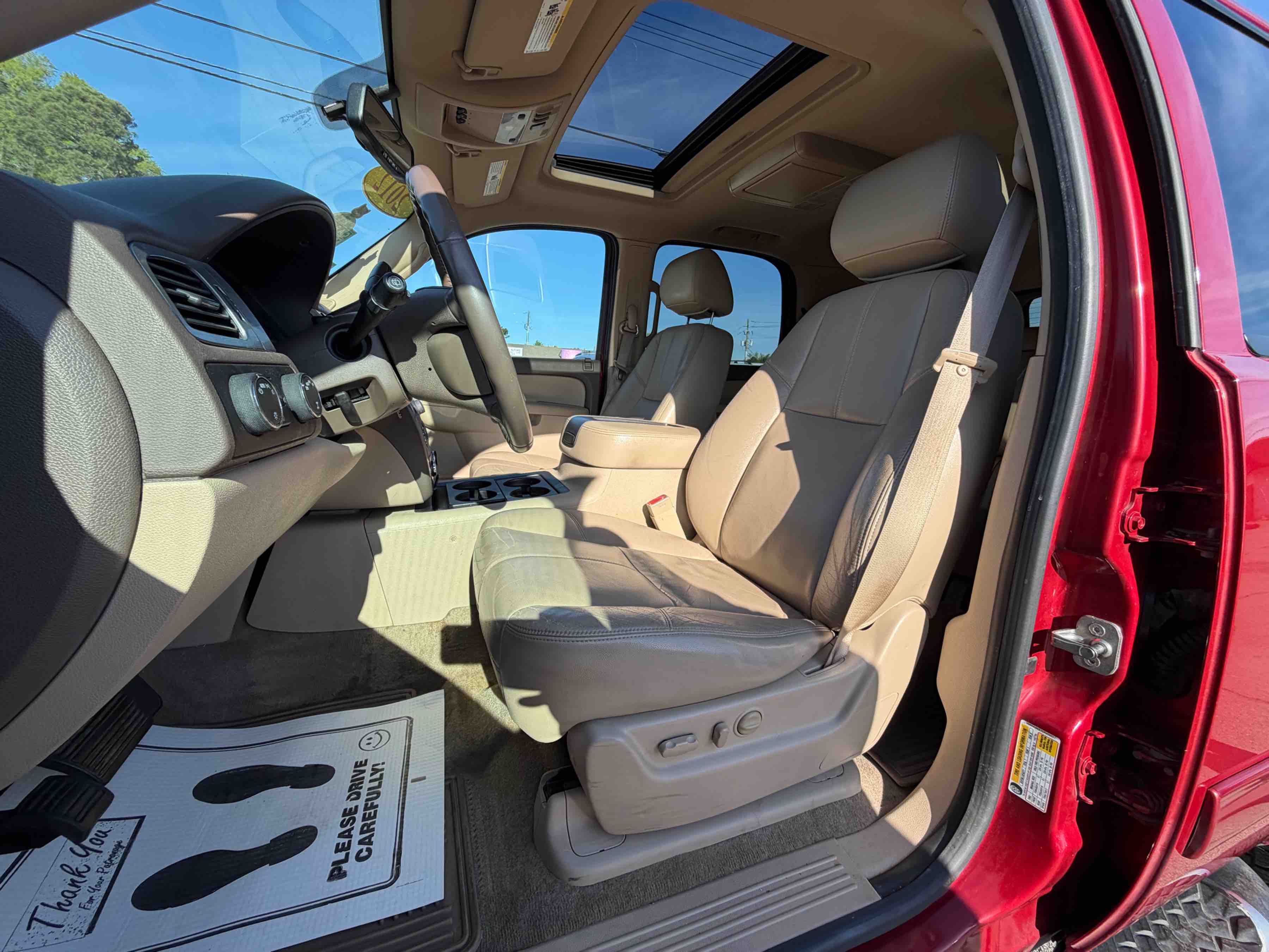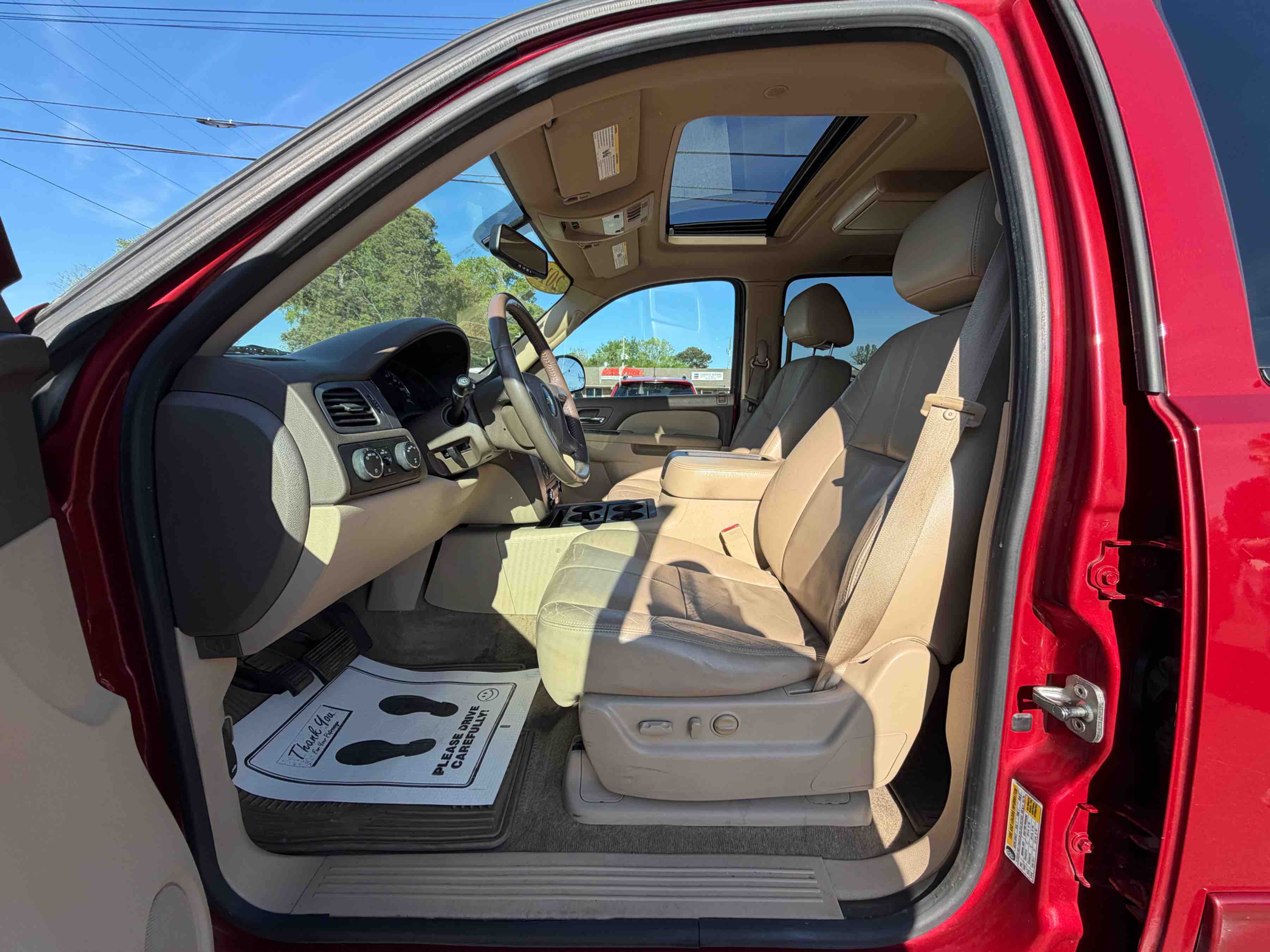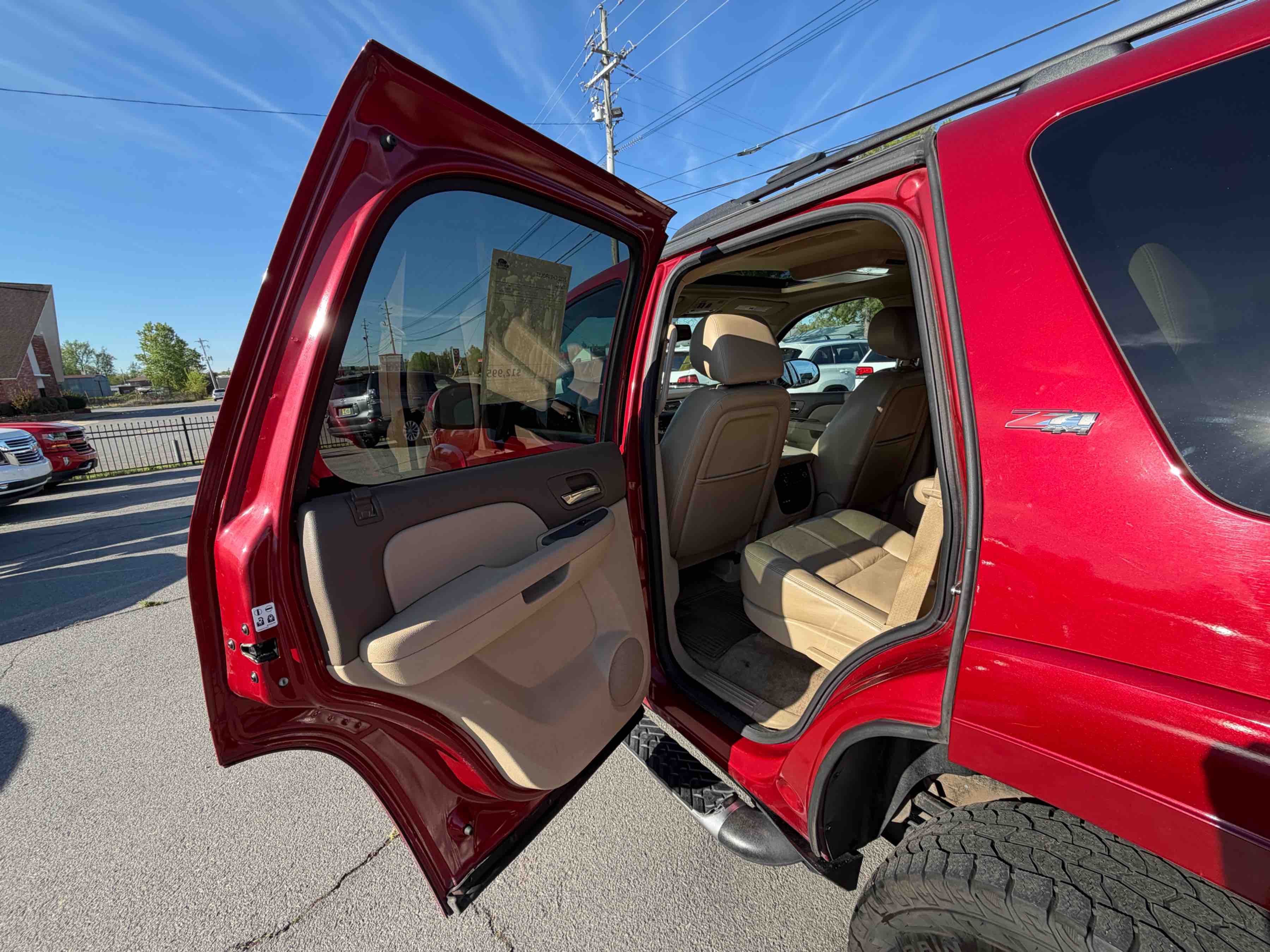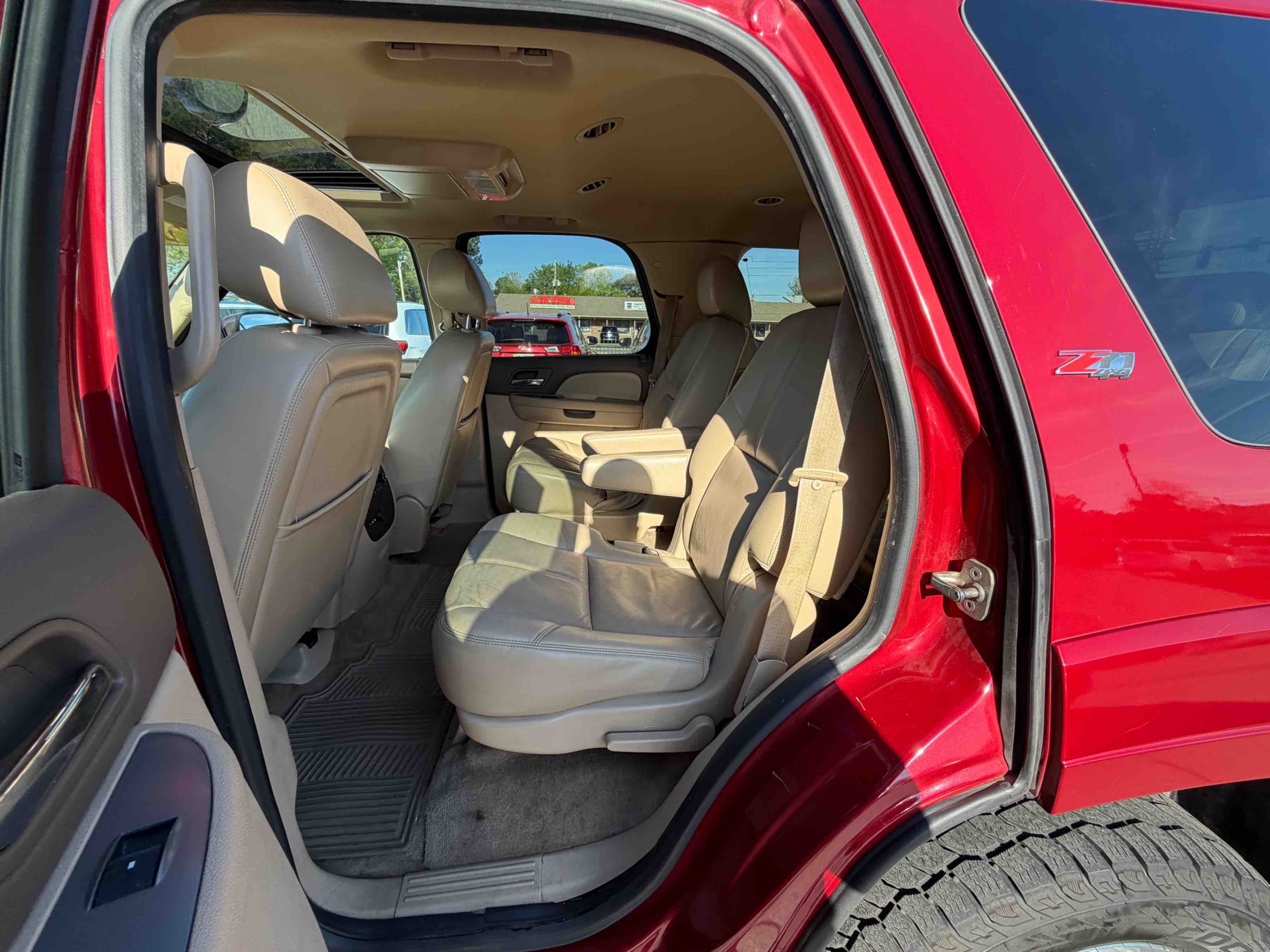 This Tahoe stands out with its striking red exterior, which is sure to turn heads wherever you go. Step inside, and you'll be greeted by a welcoming Light Cashmere and Dark Cashmere interior that combines elegance with practicality. Whether you're heading out for a weekend adventure or just running errands around town, the Tahoe's roomy interior provides ample space for both passengers and cargo.